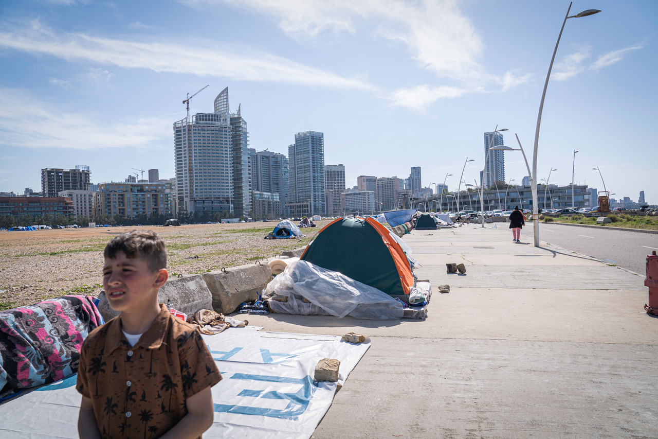 Coloro che non trovano un alloggio in affitto e nemmeno un sacco a pelo in una scuola, un luogo di culto, un’associazione culturale, finiscono per strada con una tenda. Sul lungomare di Beirut, nella zona che fino a qualche tempo fa ospitava la movida, sono nati diversi accampamenti spontanei dove intere famiglie sopravvivono alle piogge torrenziali come quelle delle ultime settimane e fra poco dovranno affrontare le altissime temperature e l’umidità dell’estate. Senza servizi igienici né alcun tipo di assistenza, perché qui non arriva nessuno.