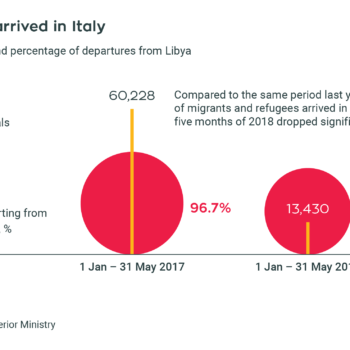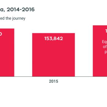 Mediterranean sea arrivals by sea in 2014 and 2015Find this infographic in this article: