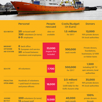Who are the NGOs doing search and rescue at sea, how do they work and get funded?Find this infographic in this article: